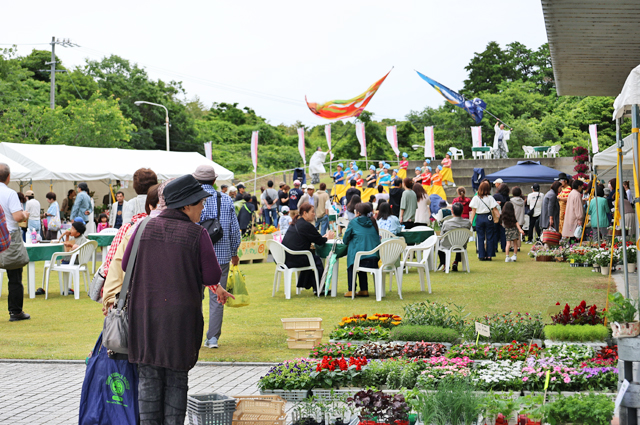 式典会場内外では、地域の高校生や花卉生産者、ボランティア団体など、56出展者による「おもてなしマルシェ〜花と笑顔に会いに行こう〜」が開催され、約1,000人が訪れました。花卉生産が盛んな牧之原市ならではの鮮度の高い花々や特産品の販売、花関係のワークショップ、展示などで会場が華やかに彩られました。