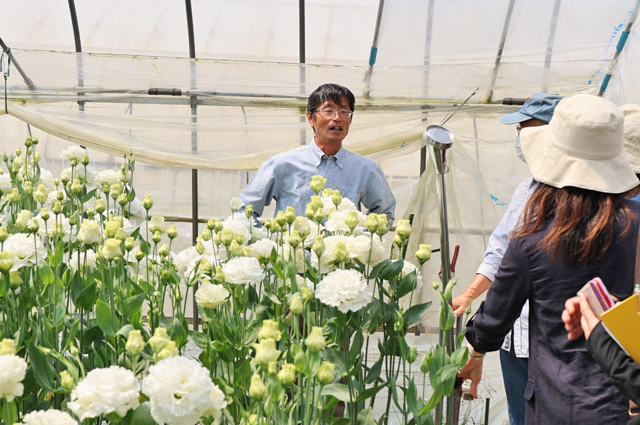 花卉圃場トルコギキョウハウスの生産者・広畑氏